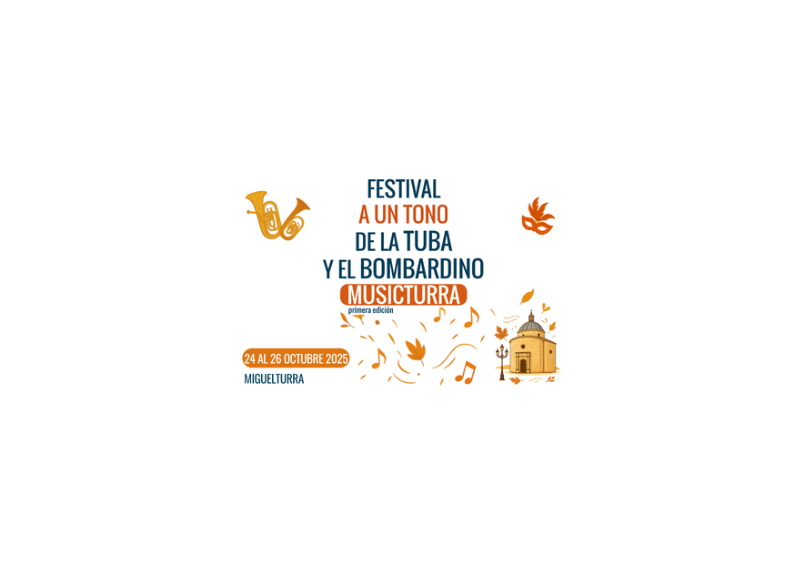¡Tres días intensos dedicados a la tuba y al bombardino! Del 24 al 26 de octubre de 2025, Miguelturra celebra la primera edición del Festival de Tuba y Bombardino MUSICTURRA “A Un Tono”: formación de alto nivel, conciertos y una gran exposición para probar instrumentos y boquillas. Organizan el Ayuntamiento de Miguelturra, la Escuela Municipal de Música y Danza y A Un Tono. Consulta la publicación oficial y el formulario de inscripción.